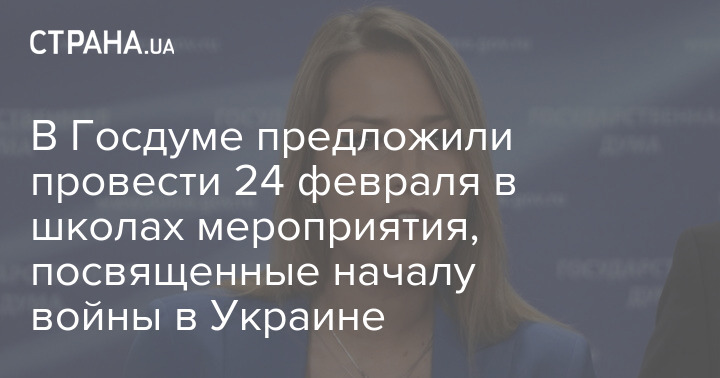 Первый заместитель главы комитета по просвещению Госдумы РФ Яна Лантратова предложила провести 24 февраля в российских школах мероприятия, посвященные началу войны в Украине. Соответствующее обращение законодательница направила министру просвещения РФ Сергею Кравцову.