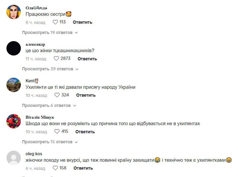 "Почему бы не кричать "мира, конец войне!"?"; "Девочки, сколько сегодня стоит один такой рабочий день?"; "Хотя бы один митинг был за мир"; "Уклонисты требуют мобилизации уклонистов. Я в ступоре"; "Вот и 200 грн заработали"; "Это что, жены тцкшников?"; "Уклонисты - это те, кто давали присягу народу Украины", - пишут люди.