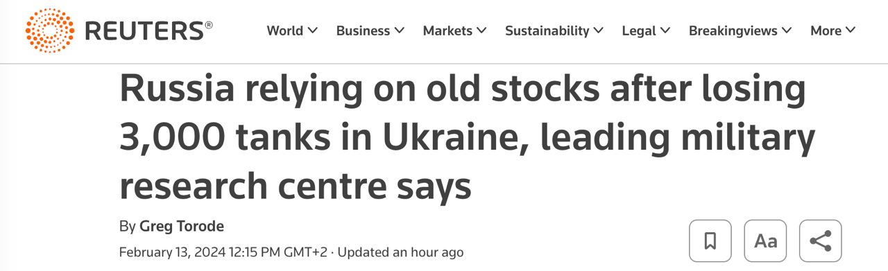 По данным аналитиков, РФ потеряла более 3000 танков за время вторжения в Украину, что эквивалентно всему ее довоенному действующему арсеналу.