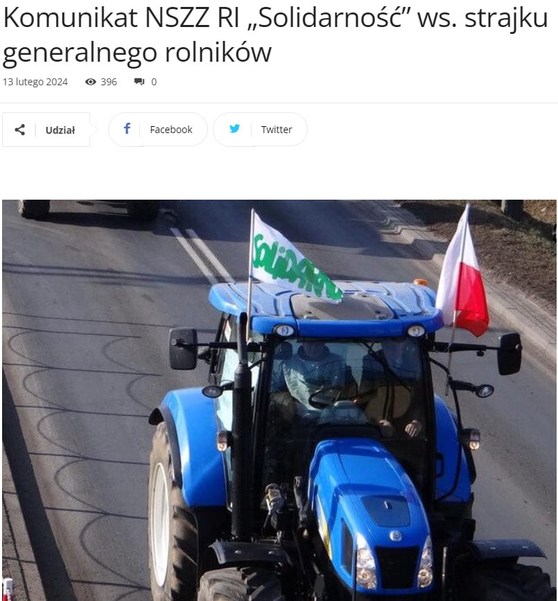 Было объявлено о начале всеобщей 30-дневной забастовки фермеров, в рамках которой планируется блокировать все восемь автомобильных пунктов пропуска на границе с Украиной. Начать перекрытие всех КПП планируется 20 февраля.