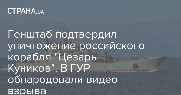 Генштаб подтвердил уничтожение российского корабля "Цезарь Куников". В ГУР обнародовали видео взрыва
