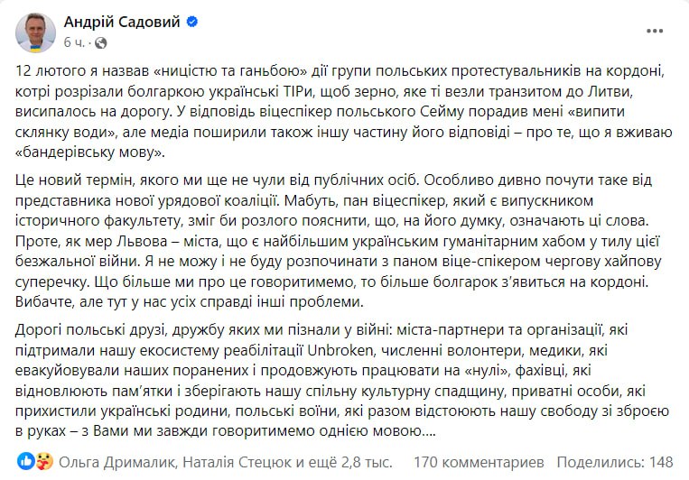 Садовый ответил поляку. Фото: facebook.com/andriy.sadovyi