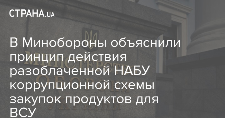 Министерство обороны объяснило, как работала коррупционная схема закупок продуктов, которую вскрыло Национальное антикоррупционное бюро Украины (НАБУ).