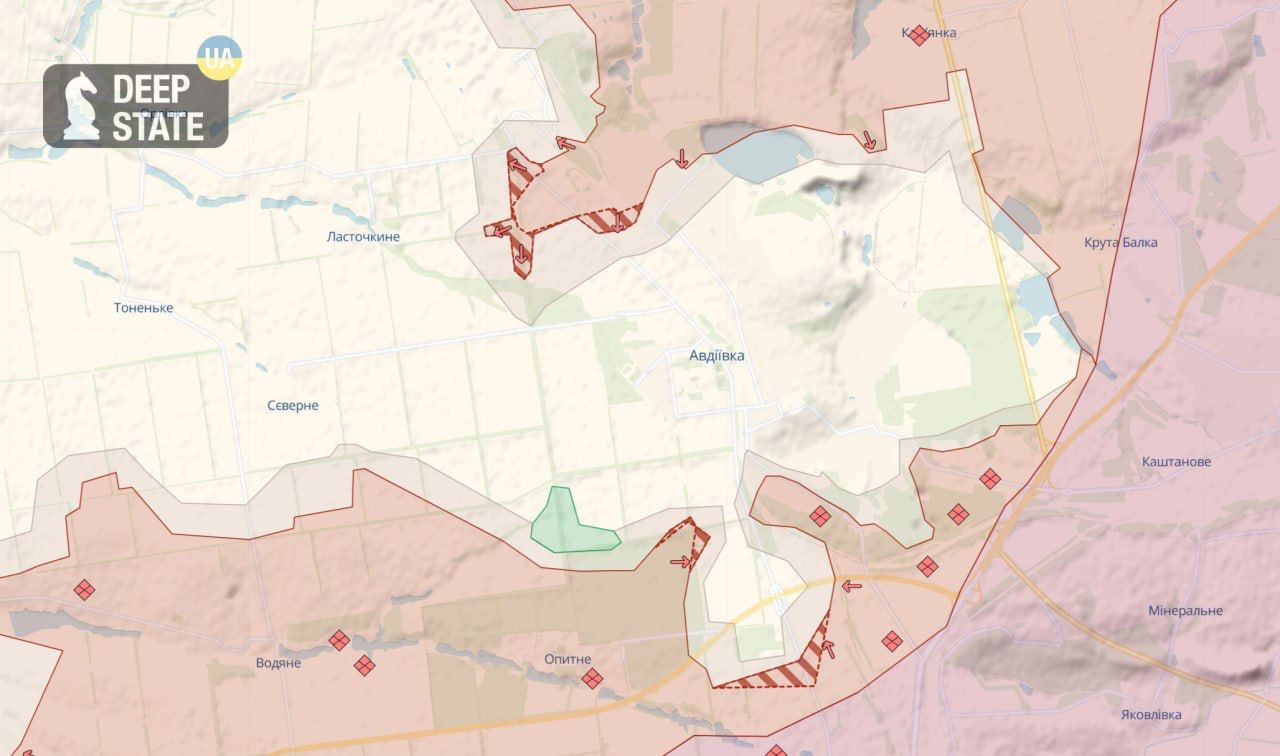 Сегодня армия РФ продолжала продвигаться в Авдеевке - с юга и восточнее Ласточкино, сообщает украинский военный паблик Deep State.