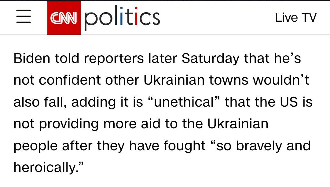 Также CNN сообщает, что Байден "не уверен, что другие украинские города также не падут" после Авдеевки.
