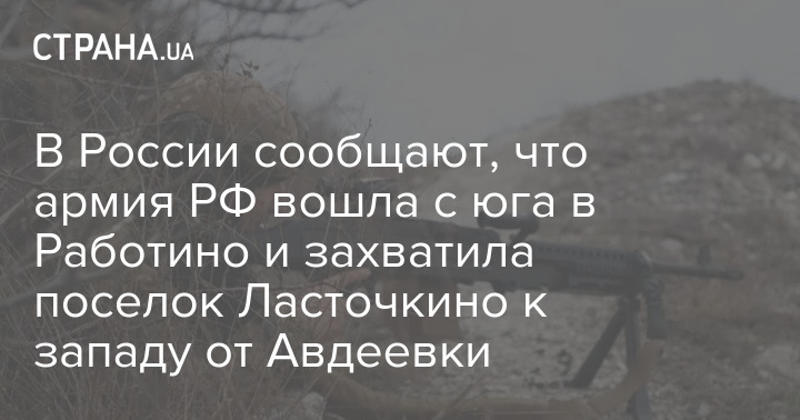 Армия РФ вошла с юга в Работино на Запорожском направлении, а также захватила Ласточкино к западу от Авдеевки.
