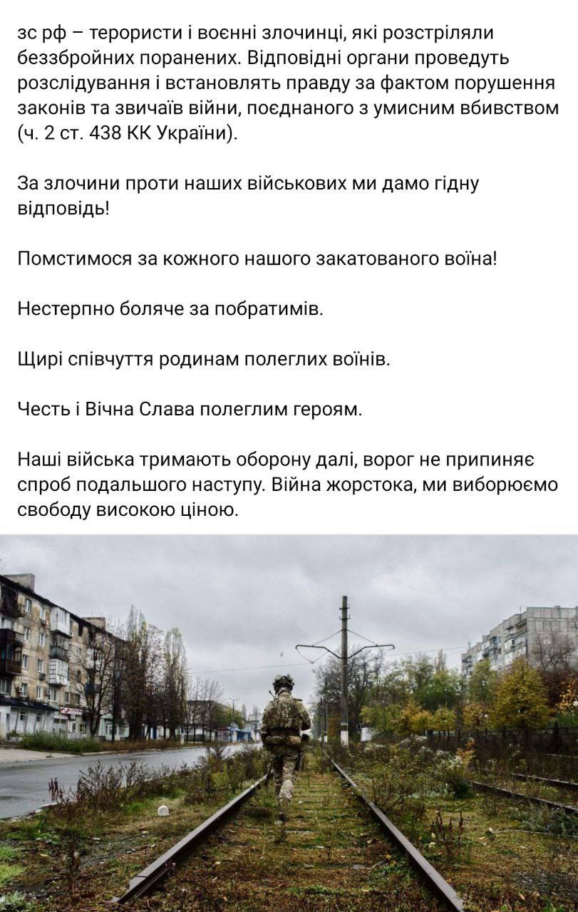 Бригада заявляет, что родственники опознали погибших военных на одном из опубликованных россиянами видео из Авдеевки. Речь идет о Георгии Павлове, Андрее Дубницком, Иване Житнике. Также, по данным бригады, расстреляны Александр Зинчук и Николай Савосик.