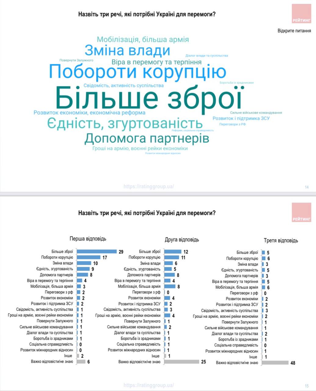 Ранее мы приводили данные другого опроса группы "Рейтинг", согласно которому число тех, кто считает, что Украина движется в неправильном направлении, впервые с начала войны превысило число тех, кто одобряет политику власти, причем сразу на 10%.