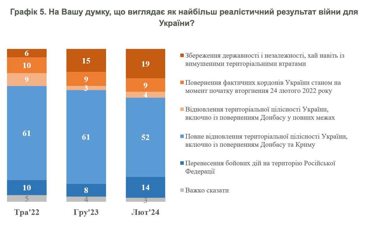 В полное восстановление границ в 2022 году верили 61%, сейчас - 52%.