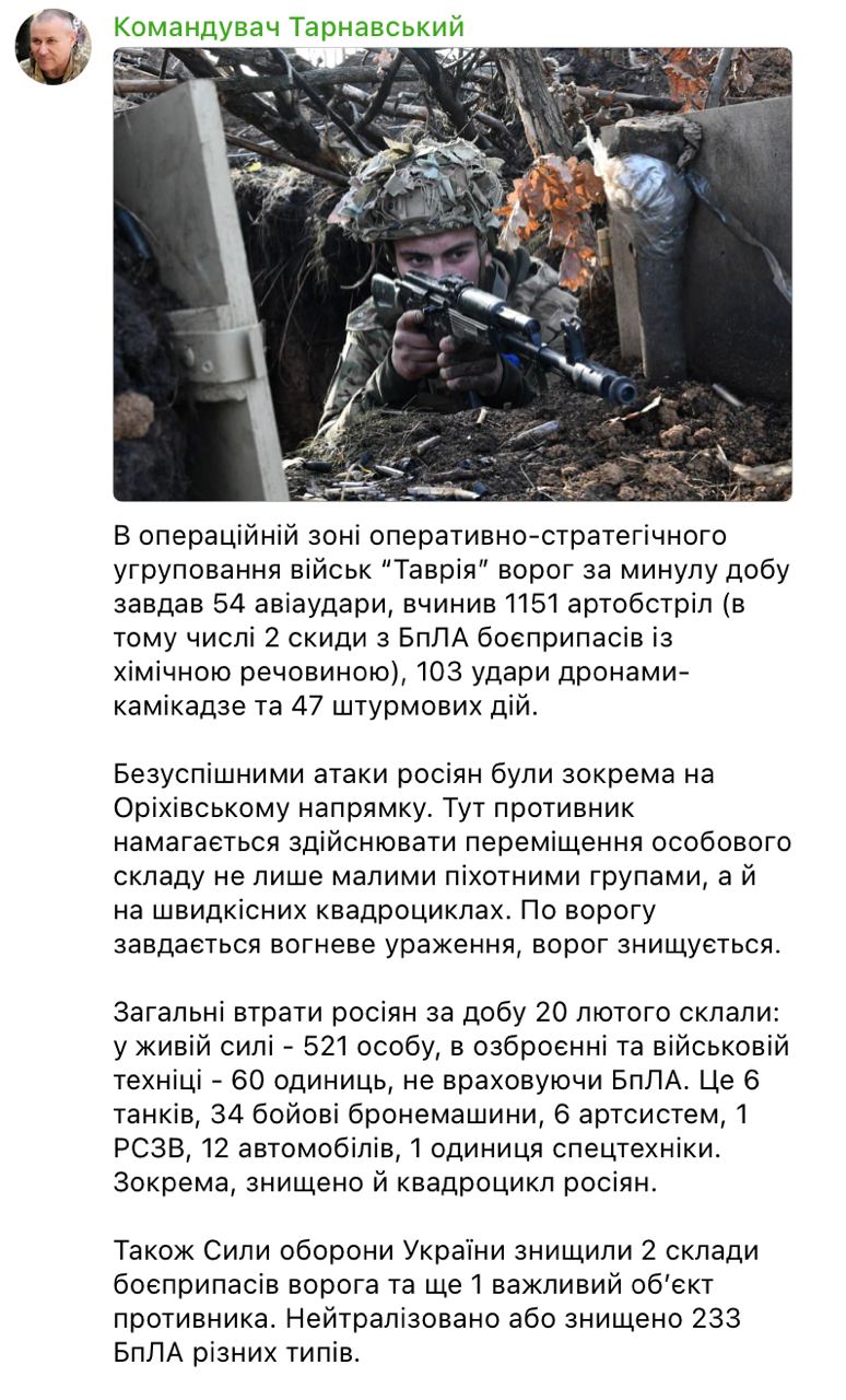 В среду, 21 февраля, в Украине идет 728-й день войны с Россией.