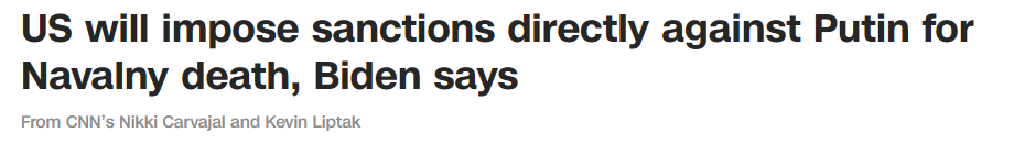 "Завтра мы объявим о санкциях против Путина, который ответственен за его (Навального) смерть", - заявил президент США после встречи с семьей Навального.