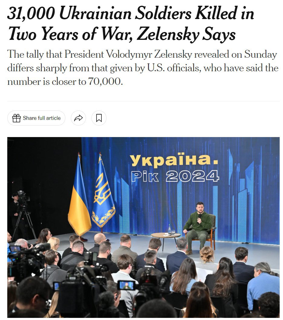 Озвученные Зеленским потери ВСУ резко отличаются от официальных оценок в США - The New York Times