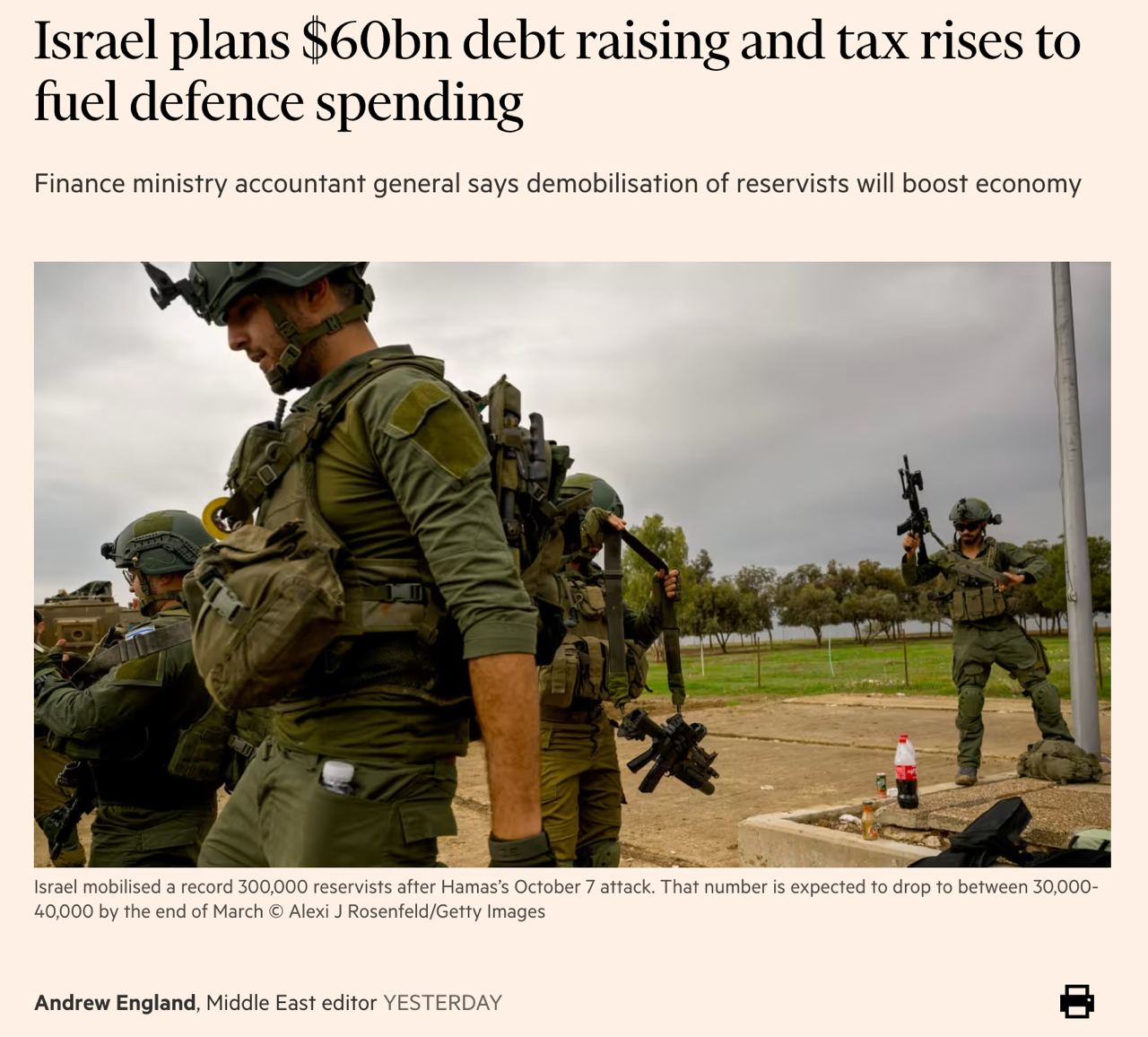 Оборонный бюджет планируется увеличить на 15 млрд долл., что на 85% больше довоенного. Расходы на оборону Израиля вырастут до 20%, по сравнению с 13,5% до войны.