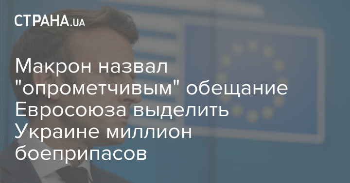 Президент Франции Эммануэль Макрон заявил, что обещание Евросоюза выделить Украине миллион боеприпасов было опрометчивым.