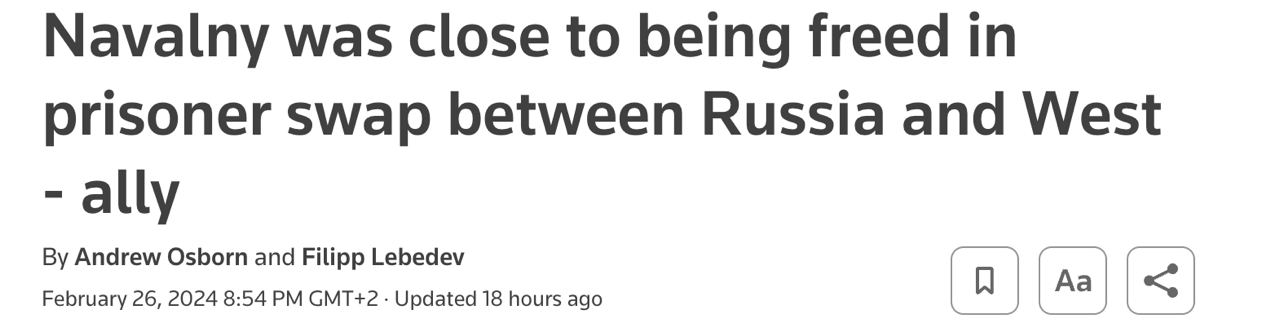 А вот западный чиновник сказал Reuters, что официального предложения об обмене Навального не поступало, но подтвердил переговоры "на ранних этапах" между Россией, США и Германией.