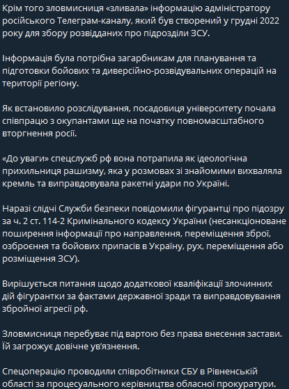 Задержанной оказалась инженер одного из технических вузов Харьковской области. Сообщается, что она поддерживала РФ в разговорах со знакомыми.
