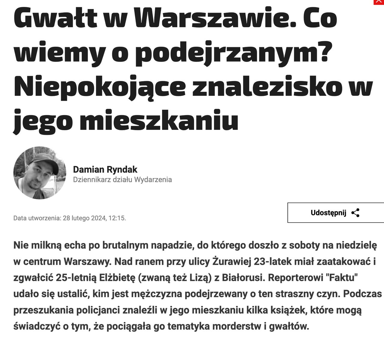 В Варшаве на глазах у прохожих изнасиловали не украинку, а белоруску.