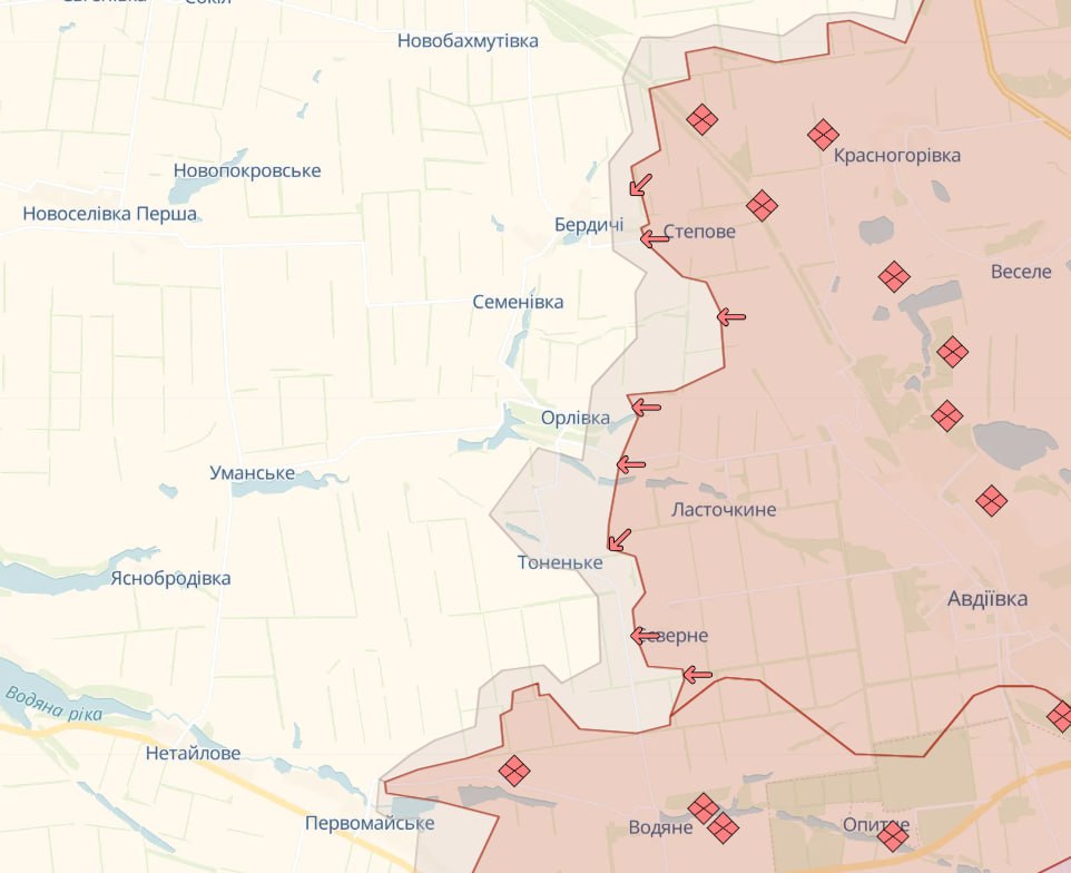 Вчера командующий ОСГВ "Таврия" Александр Тарнавский сообщил, что линия обороны ВСУ на авдеевском направлении "стабилизирована" в районах Тоненького, Орловки и Бердычей.
