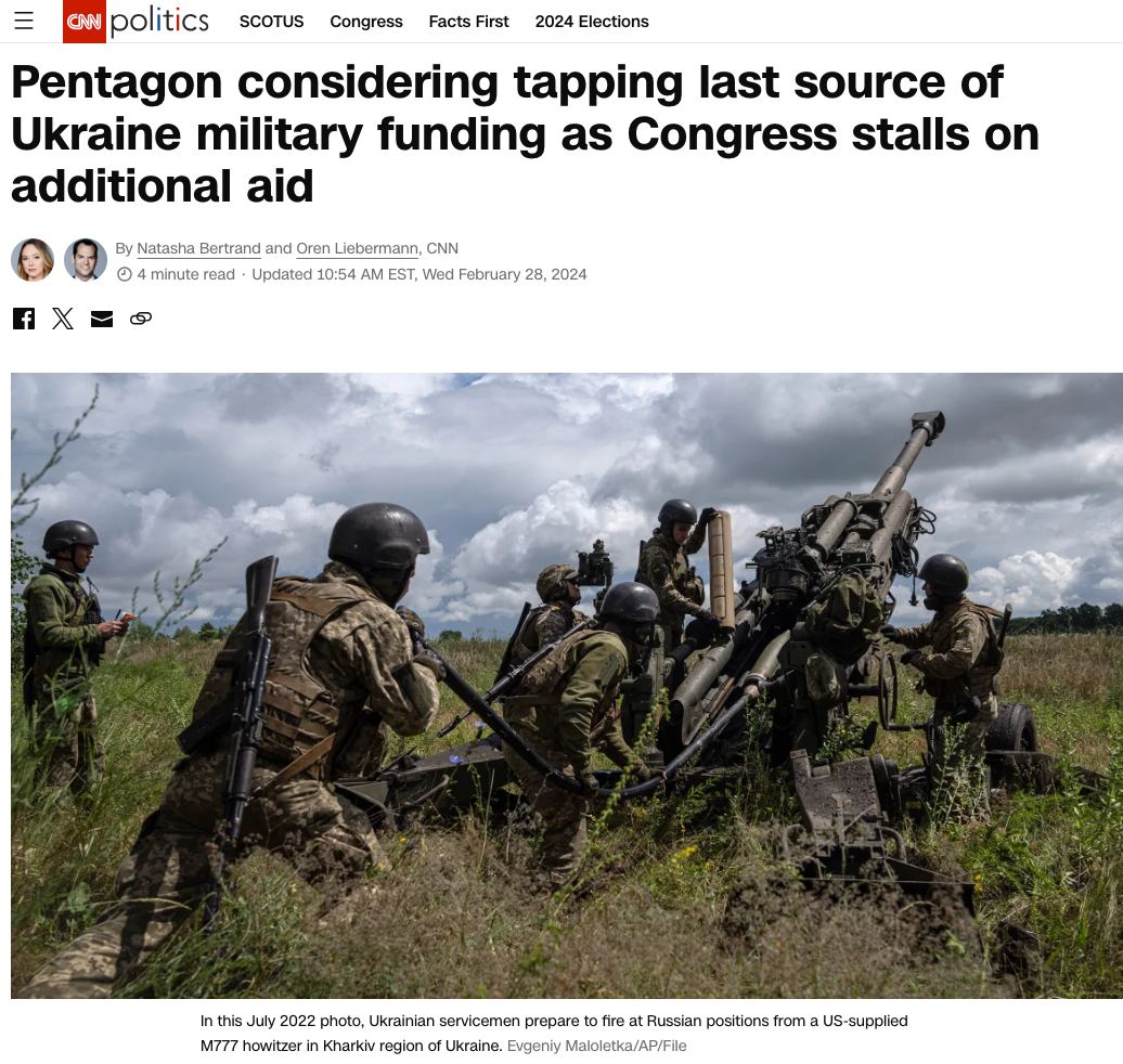 Однако Украина все больше нуждается в военной помощи США, а руководство республиканцев в Палате представителей отказывается проводить голосование по вопросу о предоставлении большего финансирования, и на этом фоне высокопоставленные представители Минобороны обсуждают, существует ли какая-то внутренняя финансовая подушка, которая позволила бы ведомству потратить хотя бы часть этой помощи.