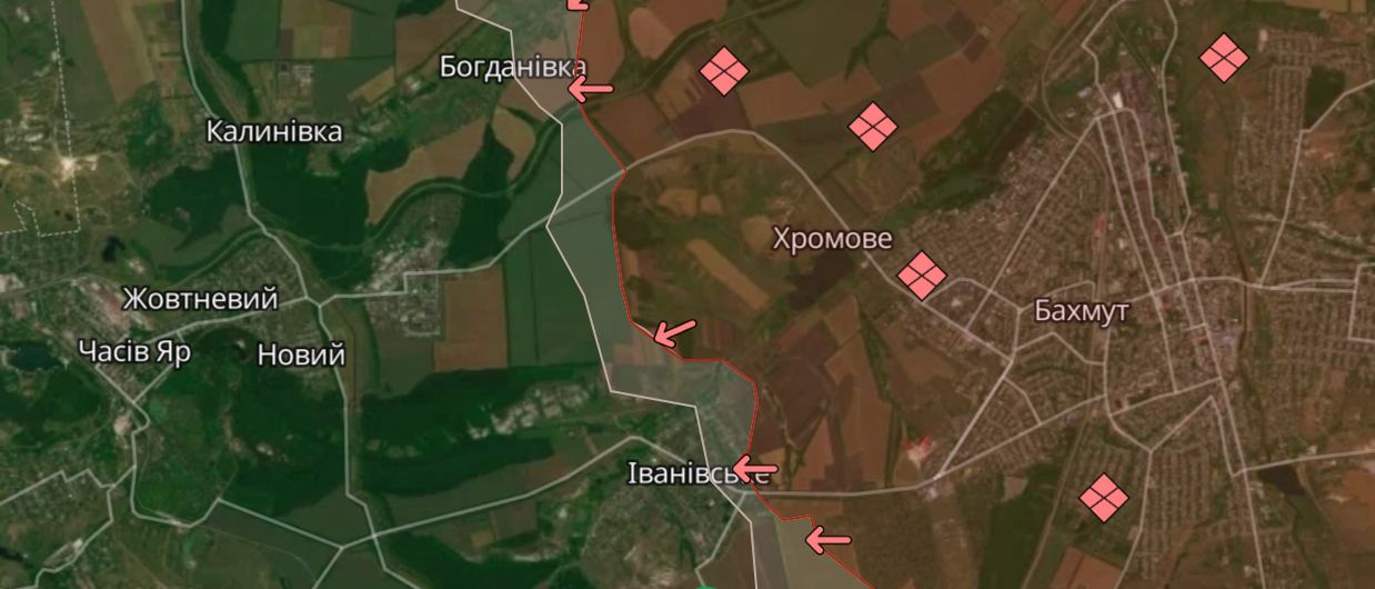 Также ВСУ сегодня заявили о российском наступлении в сторону Часова Яра. Как сообщил спикер Восточной группировки войск Илья Евлаш, бои уже идут в селах Ивановское и Богдановка.