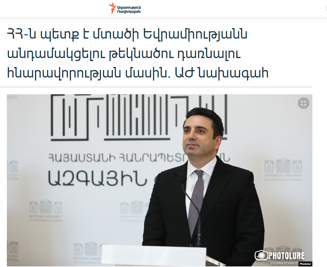 "Мы готовы двигаться и будем двигаться в направлении, которое предоставит нам наибольшую безопасность. А сейчас то, что мы демократическая страна, является важной составляющей нашей безопасности. Мы не обсуждаем вопрос изменения вектора, мы обсуждаем, что делать, чтобы уменьшить опасности, которые могут угрожать Республике Армения", – сказал Симонян.