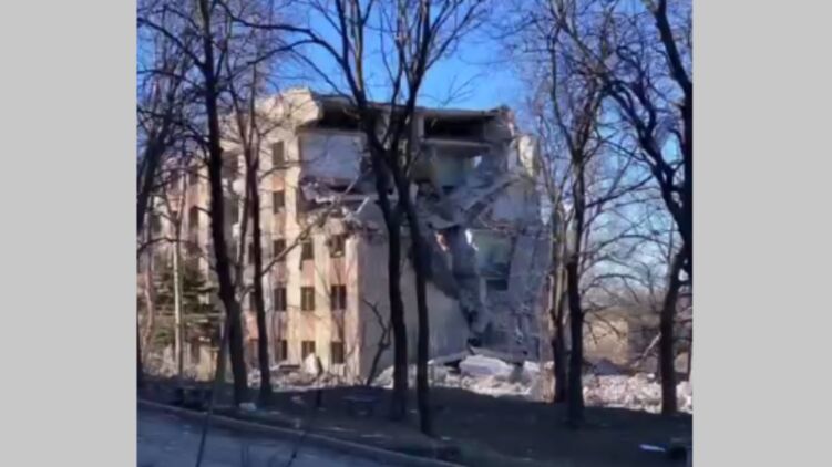 На видео можно заметить, что Очеретино очень сильно разрушено в ходе боев.