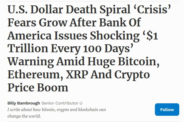 Рекордный рост курса биткоина и других криптовалют - это плохой знак для доллара.