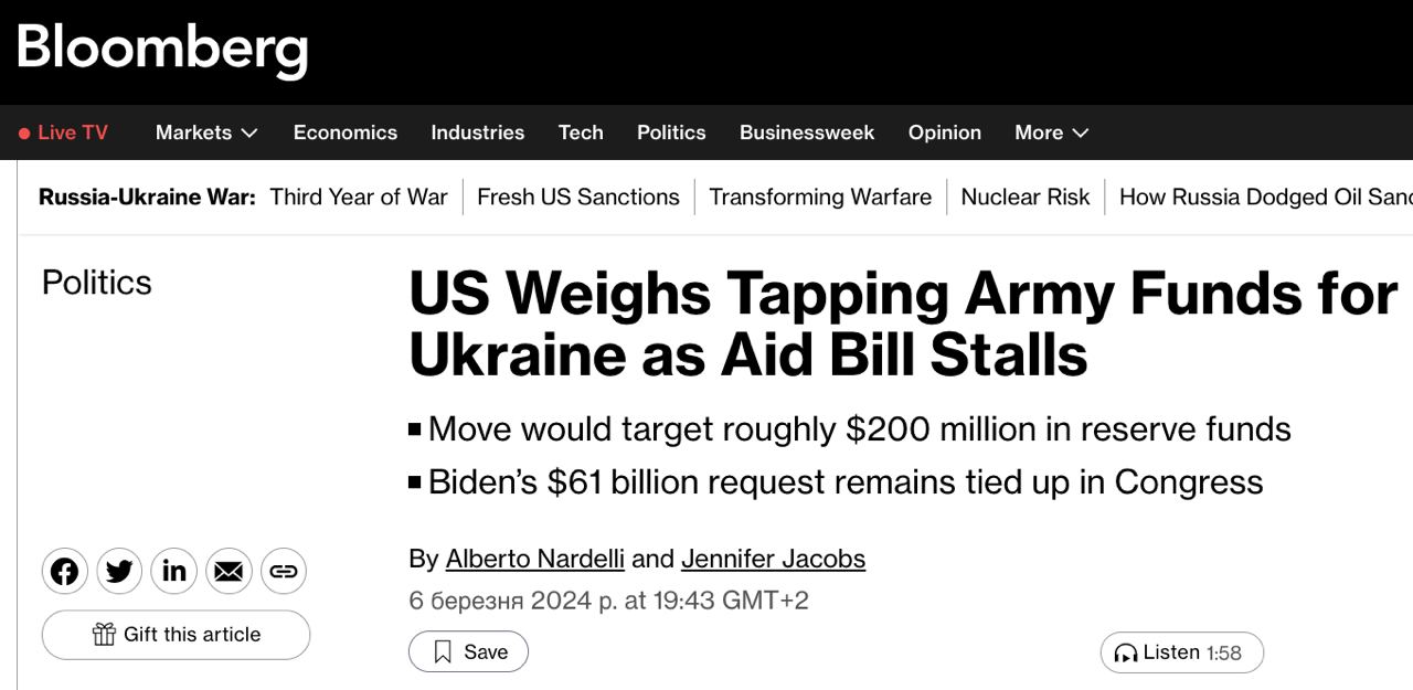 По данным агентства, дебаты по этому поводу демонстрируют усилия Белого дома найти любую возможность помочь Украине, в то время как пакет на 61 млрд долларов завис в Конгрессе.