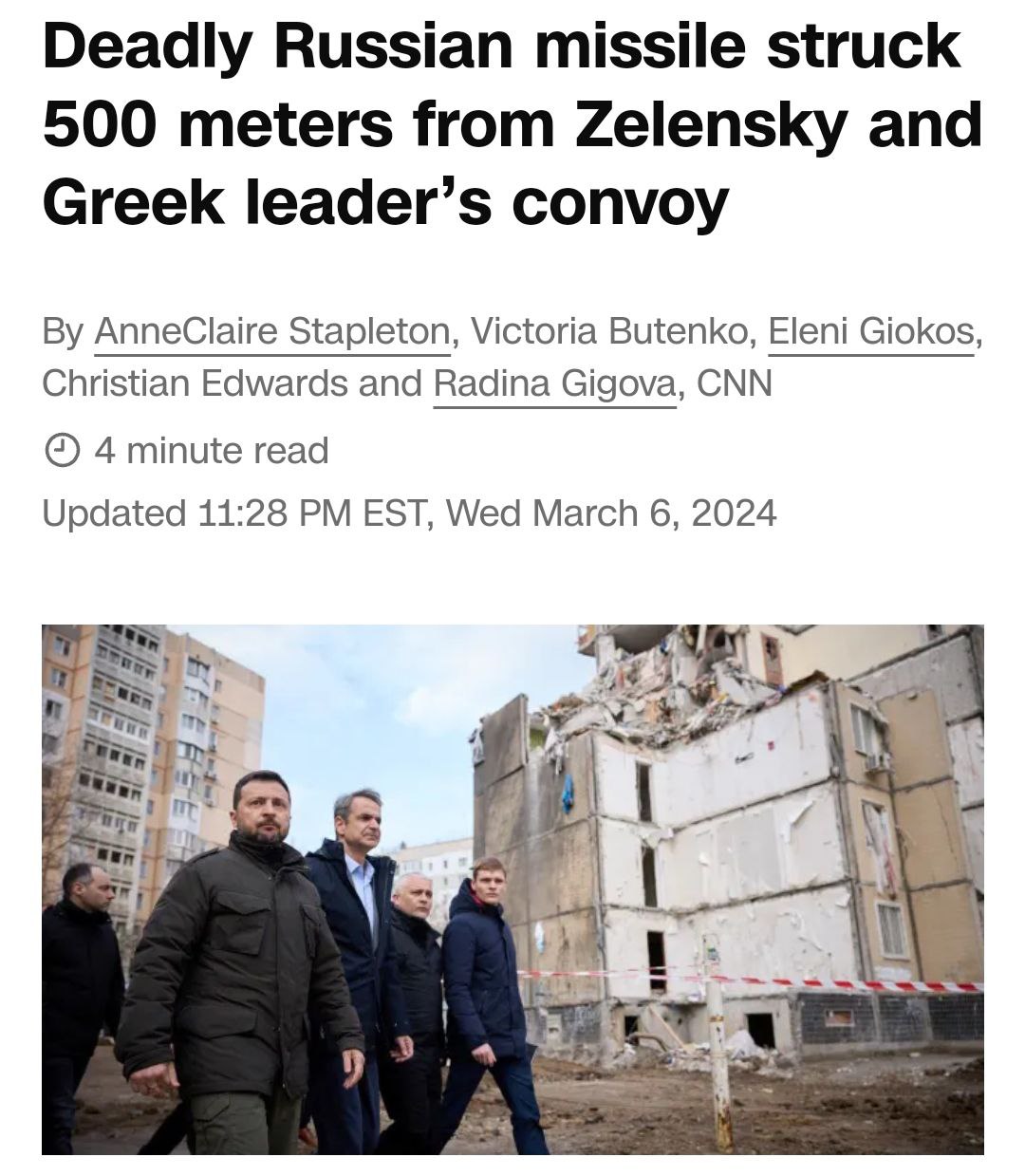 Такое расстояние - около 500 метров - называет CNN со ссылкой на источник. Зеленский и Мицотакис в это время ехали в кортеже.