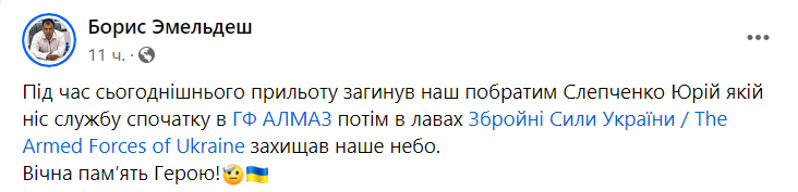 Один из погибших вчера в Одессе после ракетного удара РФ - военный Юрий Слепченко.