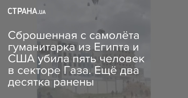 Во время сброса гуманитарной помощи на лагерь в секторе Газа погибли пять человек. Еще около 20 получили ранения.