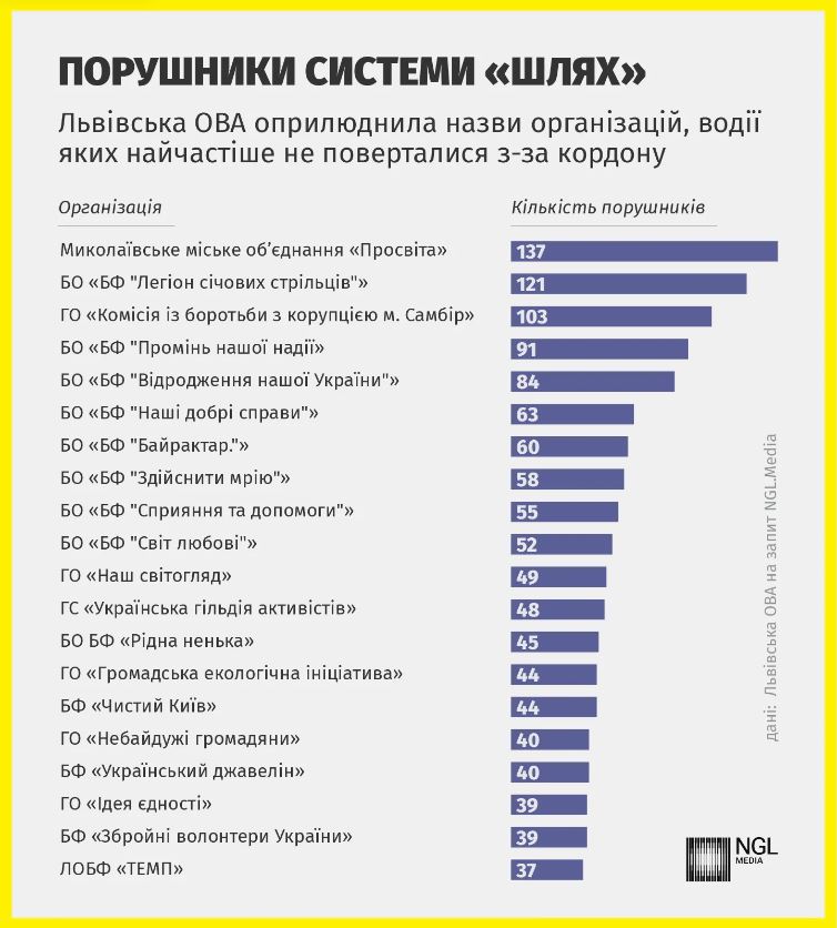 Львовская областная военная администрация предоставила список общественных организаций и благотворительных фондов, чьи водители нарушили сроки пребывания за границей, сообщают местные СМИ.