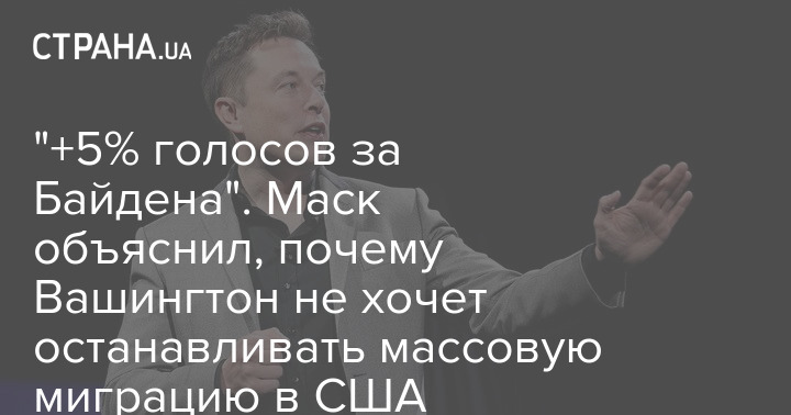 "Поскольку нелегалы ​​в основном находятся в демократических штатах, голосование и в Палате представителей, и в президентских выборах смещается примерно на 5% влево, чего достаточно, чтобы изменить весь баланс сил!" – заявляет Маск.