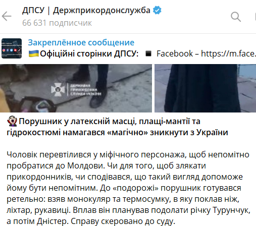 Украинские пограничники задержали мужчину в латексной маске, который пытался уйти в Молдову.