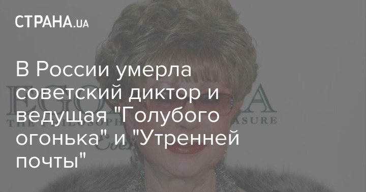 В воскресенье, 10 марта, скончалась народная артистка России, ведущая "Голубого огонька" и "Утренней почты", диктор Центрального телевидения СССР Светлана Моргунова. Ей было 84 года.