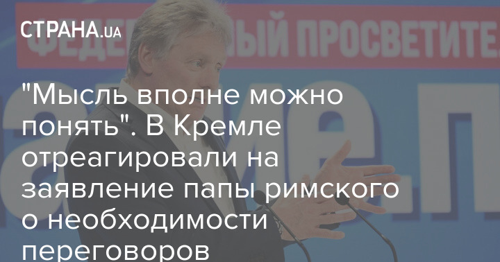 "Насколько я понимаю, в высказываниях понтифика был более широкий контекст. Но в целом ту мысль, о которой он говорил, конечно, вполне можно понять. Он высказывался о пользе переговоров. Вы знаете, что и наш президент неоднократно говорил о нашей готовности и открытости решать наши проблемы путем переговоров, и это предпочтительный путь. Но вы знаете, что, к сожалению, и высказывания папы, и неоднократные заявления других сторон, в том числе и наши, все последнее время натыкаются на абсолютно жесткое отрицание со стороны Киева. Они не допускают возможность ведения каких-либо переговоров", - заявил пресс-секретарь президента РФ Дмитрий Песков.