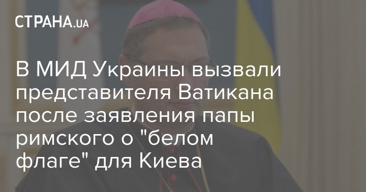 Представителя Ватикана в Украине Висвальдаса Кульбокаса вызвали в Министерство иностранных дел Украины из-за высказываний папы римского Франциска в СМИ.