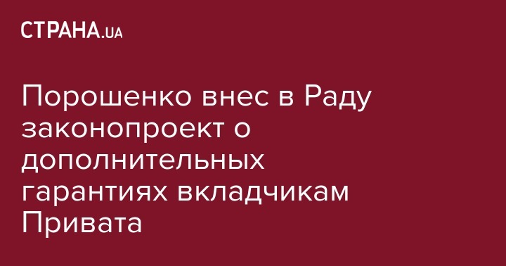 Президент Петр Порошенко внес в Верховную Раду законопроект, который должен дать дополнительные гарантии вкладчикам "Приватбанка". Соответствующий проект закона о внесении изменений в "Закон о банках и банковской деятельности относительно гарантирования государством вкладов физических лиц", зарегистрирован 19 декабря под номером 5553.
