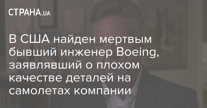 В США найден мертвым бывший инженер Boeing, заявлявший о плохом качестве деталей на самолетах компании