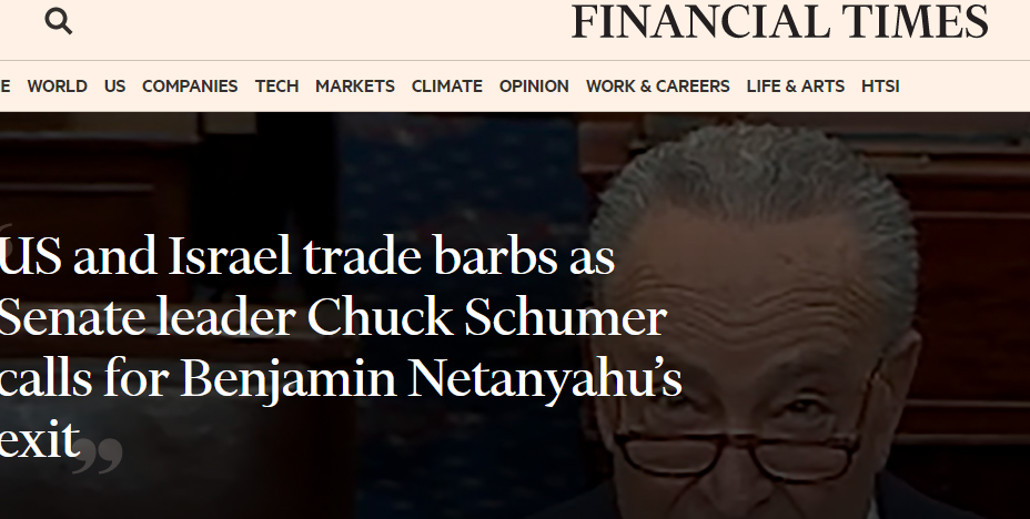 Растущий гнев Вашингтона. Лидер демократов в Сенате США призвал израильтян сменить премьера Нетаньяху - FT