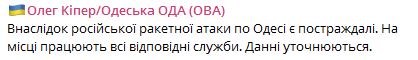 В Одессе есть пострадавшие после ракетного удара РФ