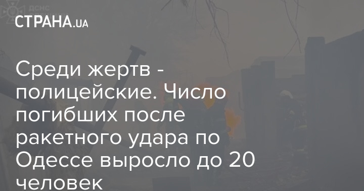 Число погибших в Одессе в результате ракетного удара РФ увеличилось до 20 человек.