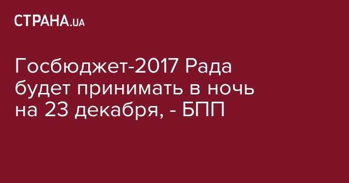 Замглавы фракции "Блок Петра Порошенко" Ирина Луценко прогнозирует, что Верховная Рада примет государственный бюджет Украины на 2017 год в ночь на пятницу, 23 декабря. Об этом сообщает "Интерфакс-Украина".