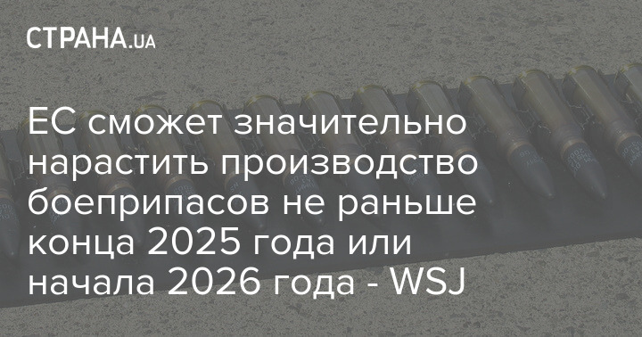 Евросоюз сможет значительно нарастить производство боеприпасов, в том числе для поставок Украине, не раньше конца 2025 года или начала 2026 года.
