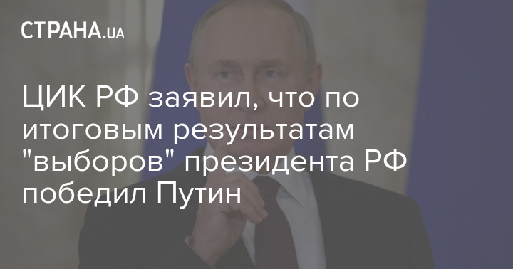 Российский Центризбирком объявил итоговые результаты "выборов" президента РФ после обработки 100% голосов. У Владимира Путина - 87,28%.