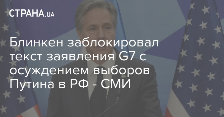 Госсекретарь США Энтони Блинкен заблокировал текст заявления G7 с осуждением выборов Путина в РФ.