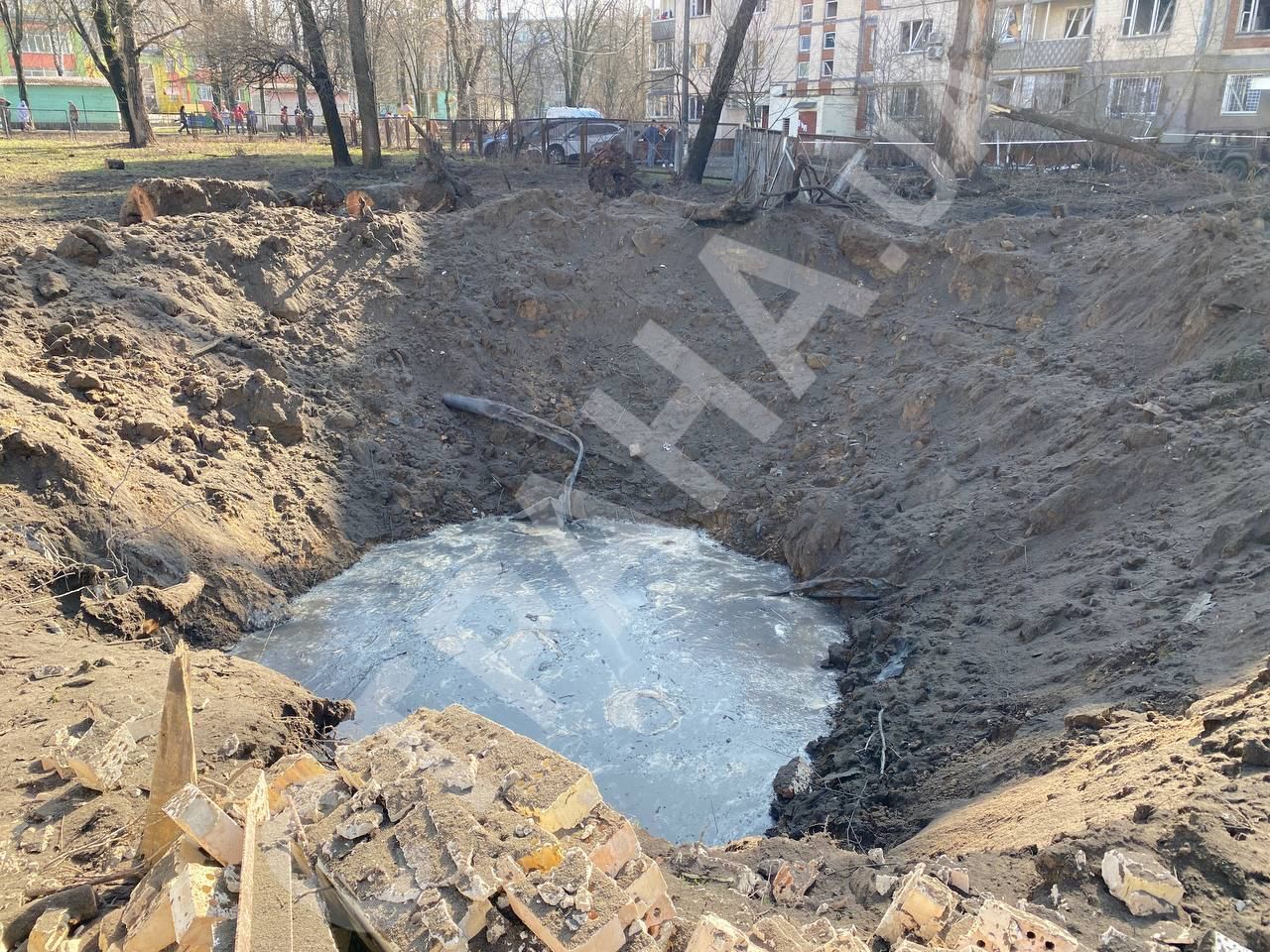 Обломки сбитой ракеты упали во дворе жилого дома, образовалась огромная воронка 15 на 15 метров.