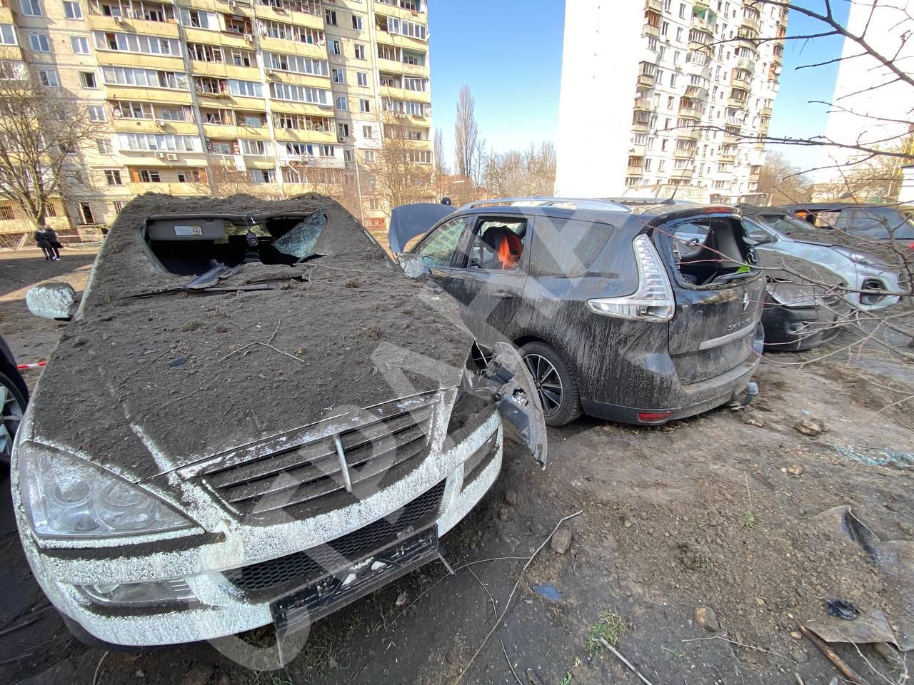 Воронка, выбитые окна и поврежденные авто. Появились кадры после ракетной атаки в Святошинском районе Киева