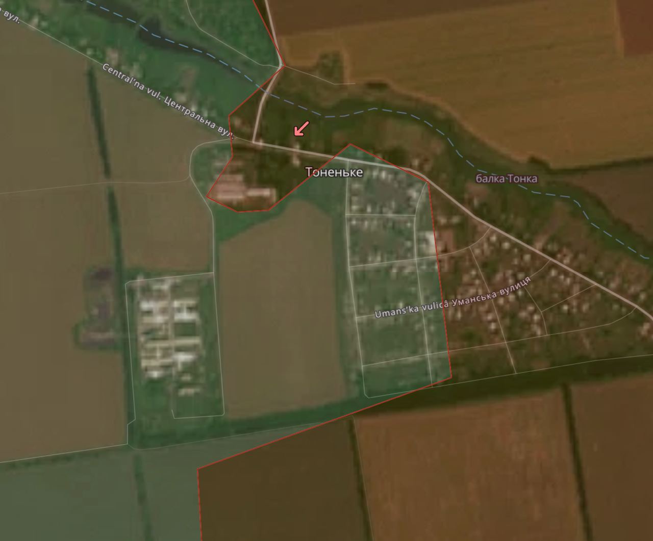 Между тем украинский Генштаб утром сообщал, что атаки противника в Тоненьком были отбиты. А на карте украинского военного ресурса Deep State показано, что Тоненькое захвачено наполовину и перерезана основная трасса снабжения ВСУ.