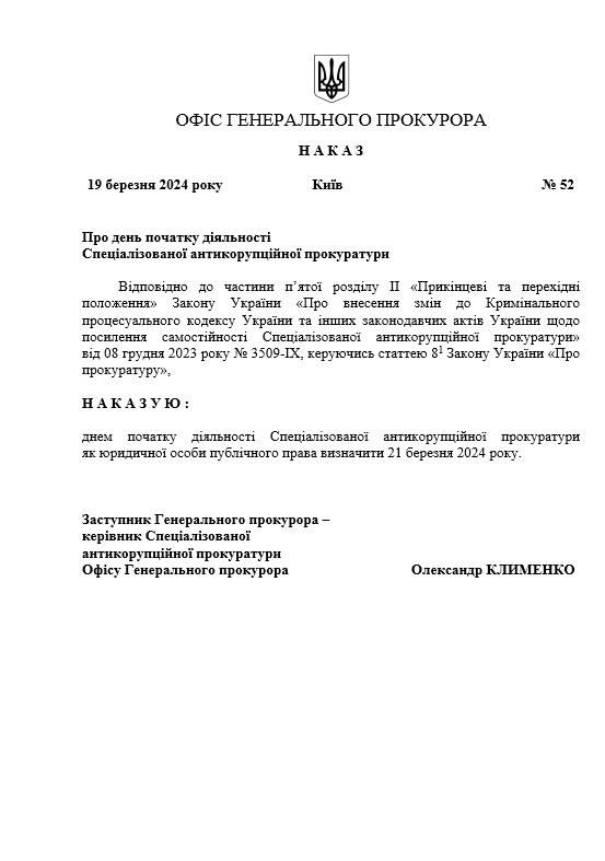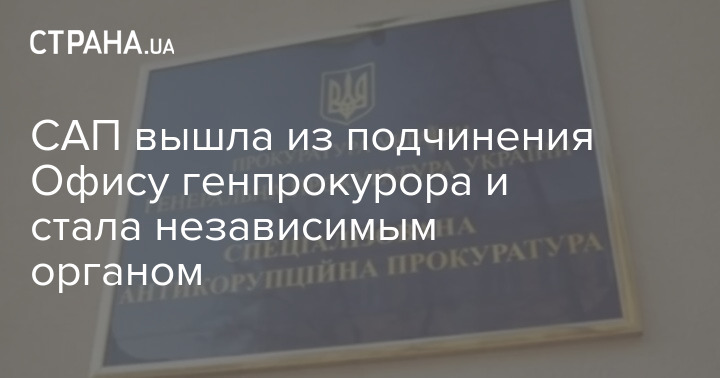 В Украине Специализированная антикоррупционная прокуратура (САП) выходит из структуры Офиса генерального прокурора (ОГП) и становится независимым органом.